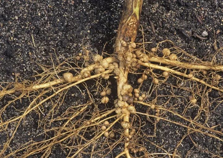 线虫性病害造成的根部表现症状往往同真菌性病害的根肿病和豆科作物的根瘤容易混淆, 应加以区分。