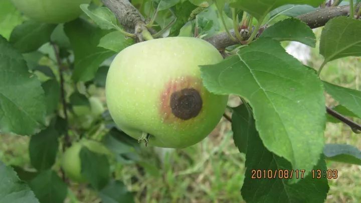 小颗粒状物:很多真菌性病害,在植物病部表面或组织内会产生黑色的小颗粒,比如苹果炭疽病、腐烂病等。